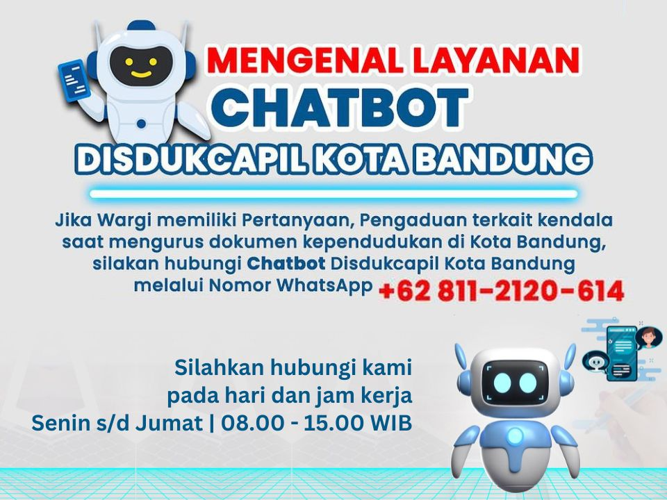 Jika Wargi memiliki pertanyaan, pengaduan terkait kendala saat mengurus dokumen kependudukan di Kota lamongan, silakan hubungi Chatbot Disdukcapil Kota lamongan melalui Nomor Whatsapp +62 811-2120-614 Silahkan Hubungi Kami selama hari dan Jam kerja (Senin-Jumat 08.00 - 15.00 WIB)